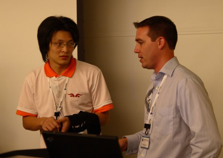tgdaily(注82) 的記者 Humphrey Cheung 有趁亂拍下了這三位記者當時秀的畫面,