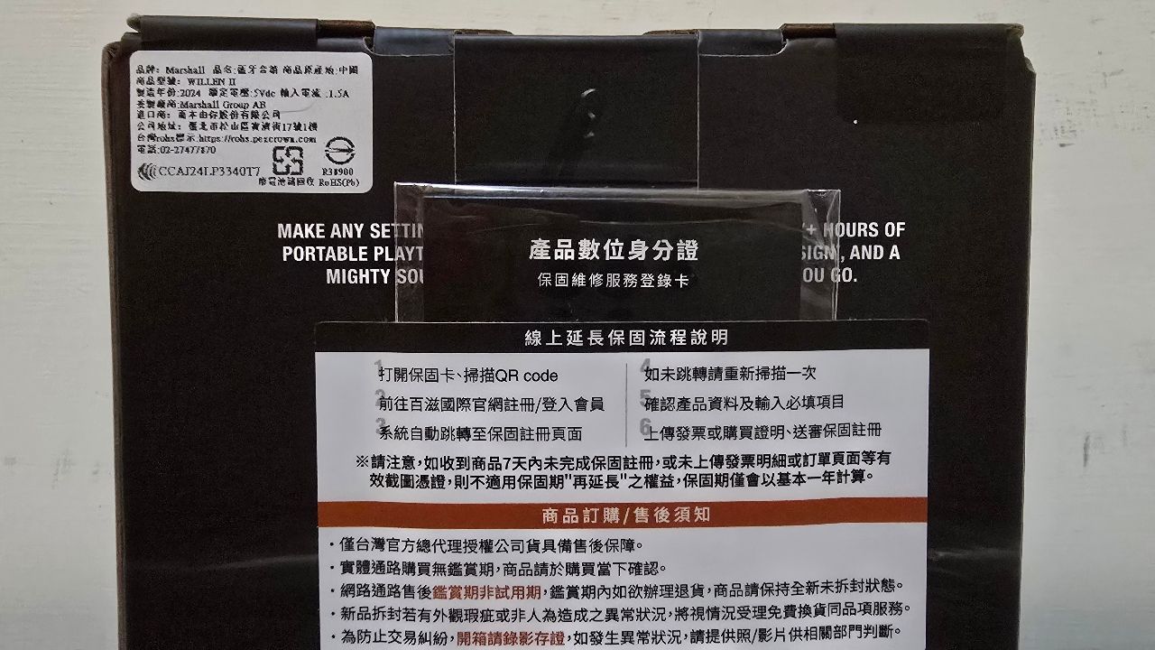 1. 產品型號:Marshall Willen II便攜式防水藍芽喇叭 奶油白 台灣公司貨