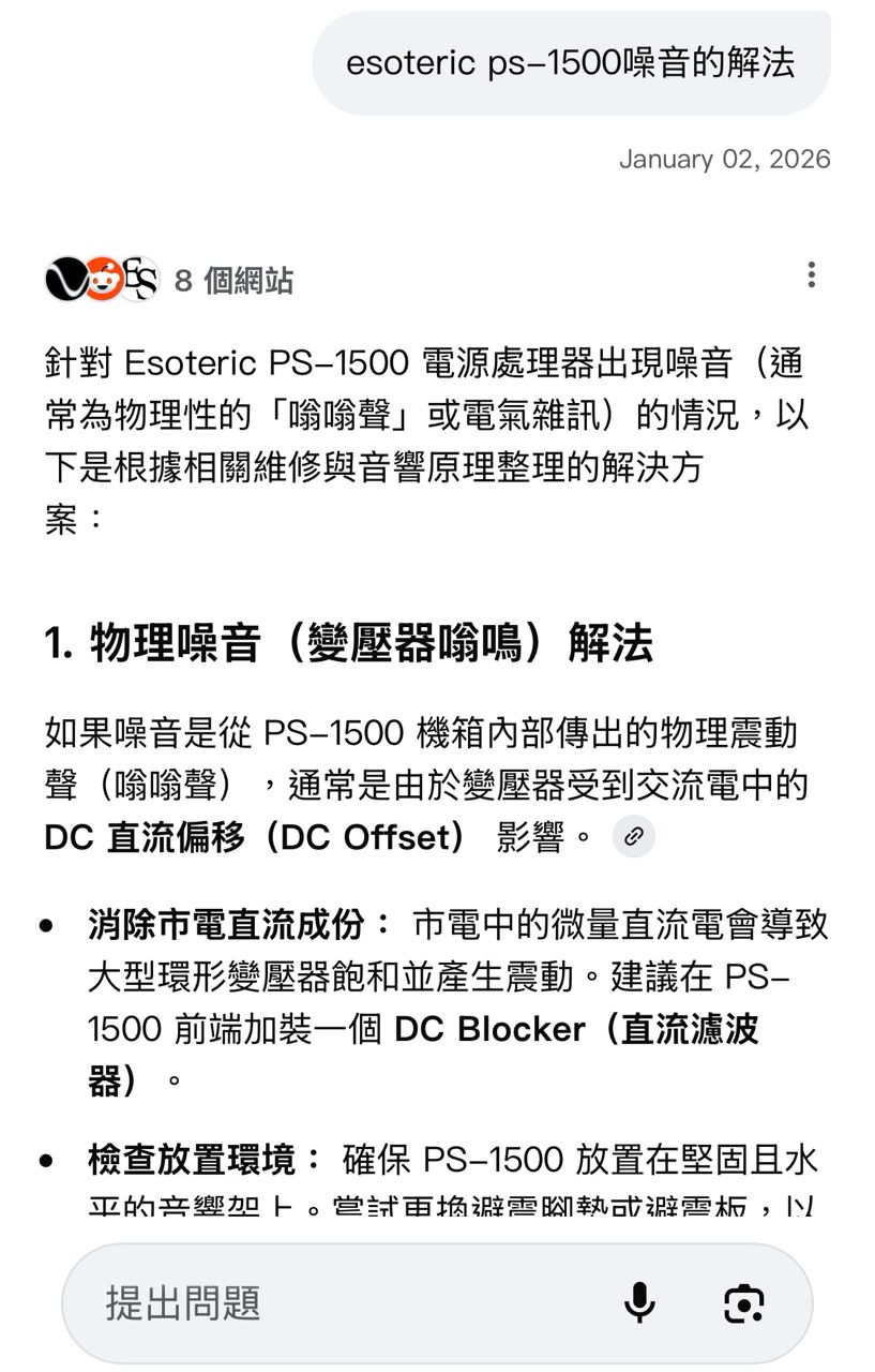 前幾天我的Esoteric PS1500又開始有嗡嗡聲