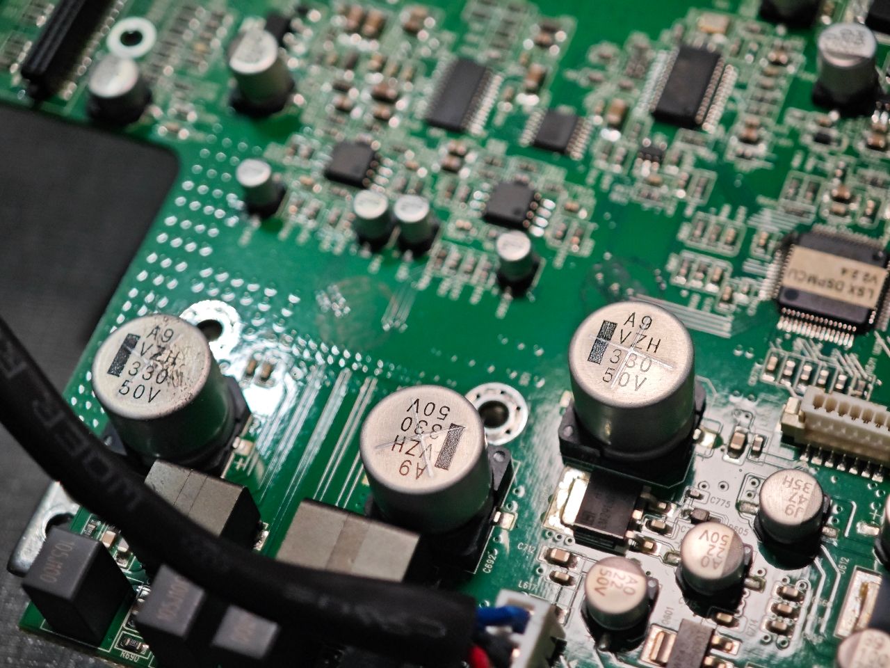 拆卸電路板後,我們發現內部的固態電容已出現明顯的膨脹現象(鼓包),這也是導致主