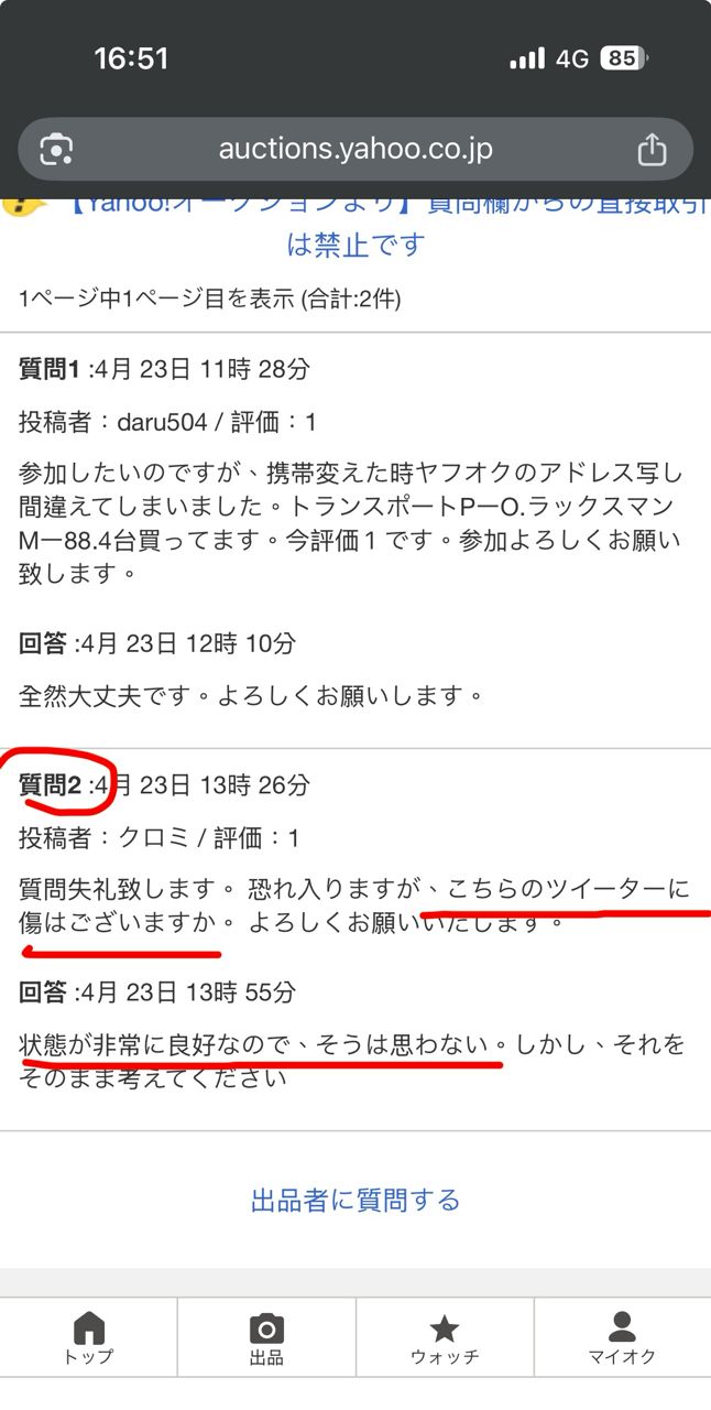 答:狀態非常好,所以我不認為有損傷。不過,請您這樣理解就好。