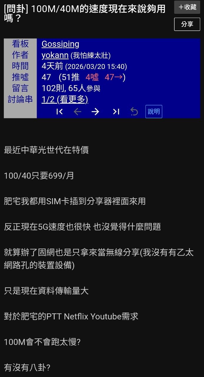 ※ 文章網址: https://www.ptt.cc/bbs/Broad_Band/M.1774395990.A.B83.html
