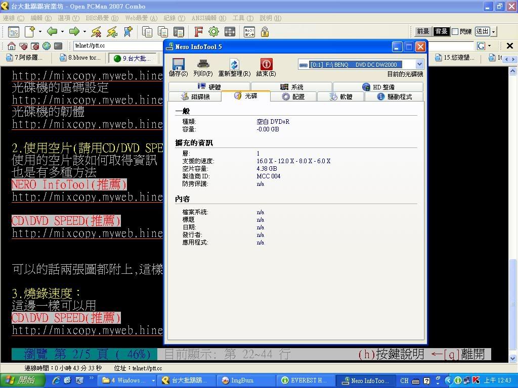 2.使用空片(請用CD/DVD SPEED來PO出光碟資訊):