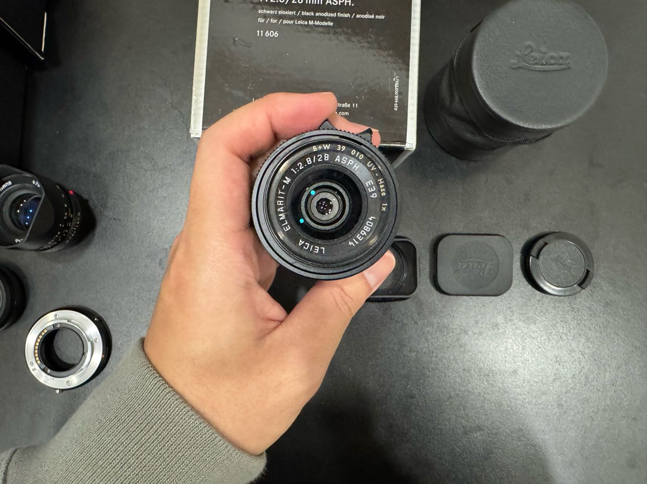 【物品內容】Leica 鏡頭 11606, 28mm F2.8 ; 11680, 50mm F2.4, 盒單(文件,皮套、