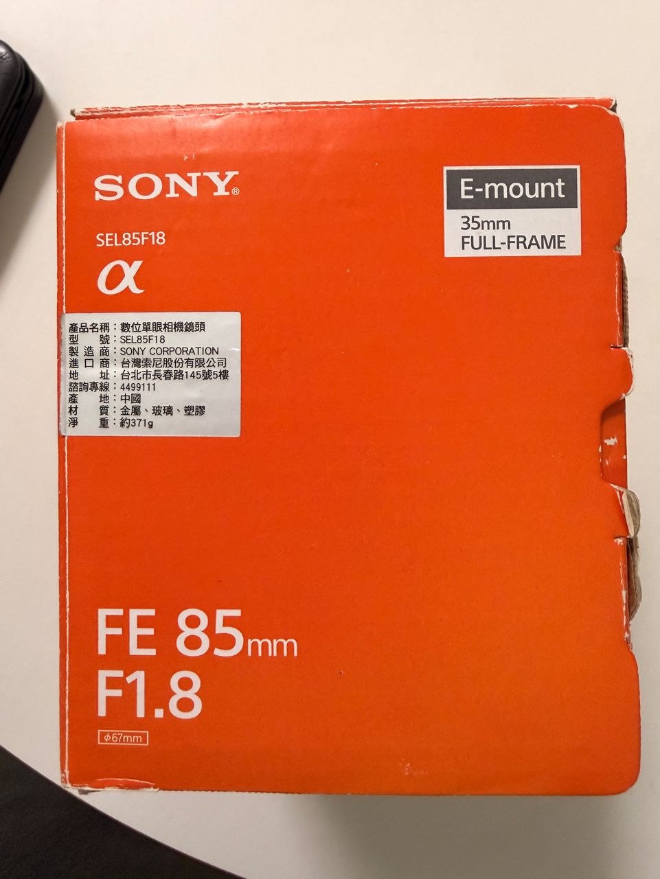 【物品內容】 Sony 85mm F1.8