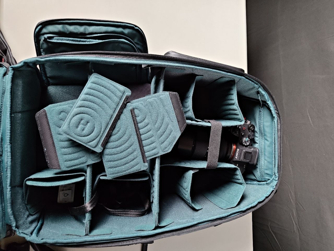 購買時的隔板,腰帶,小包皆有,前袋可以從35L擴充至45L,小包也可向上擴充,整體非