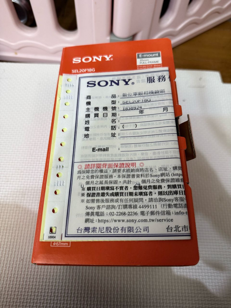【物品內容】 FE 20 mm F1.8 G