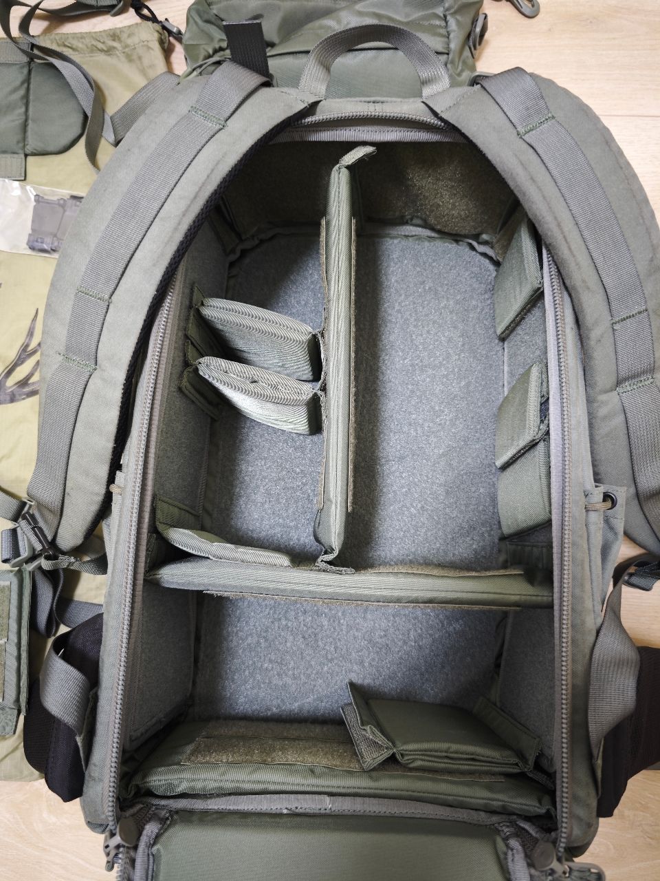 附保卡、防雨套、收納袋、全套隔板及最上方的攻頂袋(含夾片,可有背帶單獨背),詳