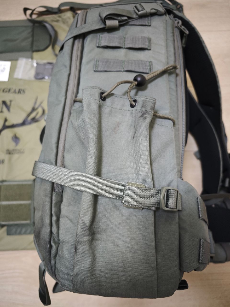 有使用痕跡約6成新,縫線跟布料依據廠牌描述都是軍規等級,非常耐用耐髒,詳細包包