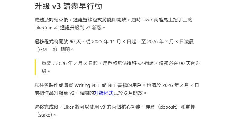 (3)LikeCoin V2升級到V3的通證遷移程式將於11月3日開放
