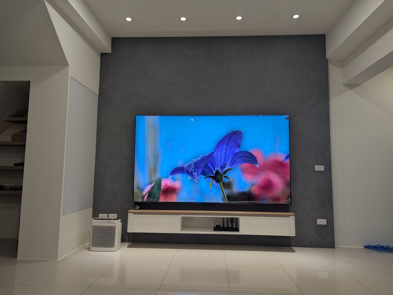 手機拍得太廣角,但實際電視大小是剛剛好