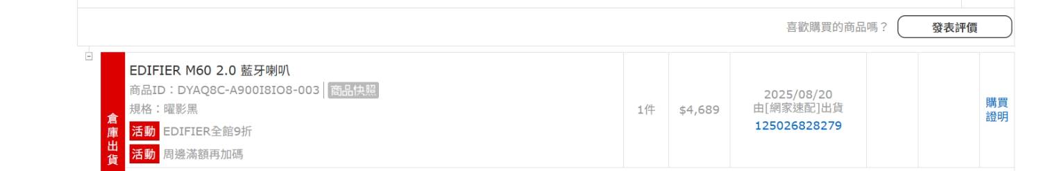 ◎品樣狀況:2025年8月20日pchome購買