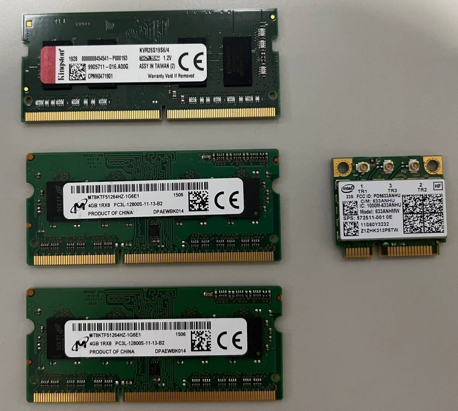 3、筆電DDR4 2666 4GB, 筆電DDR3 1600 4GB*2, Intel 633ANHMW無線網卡
