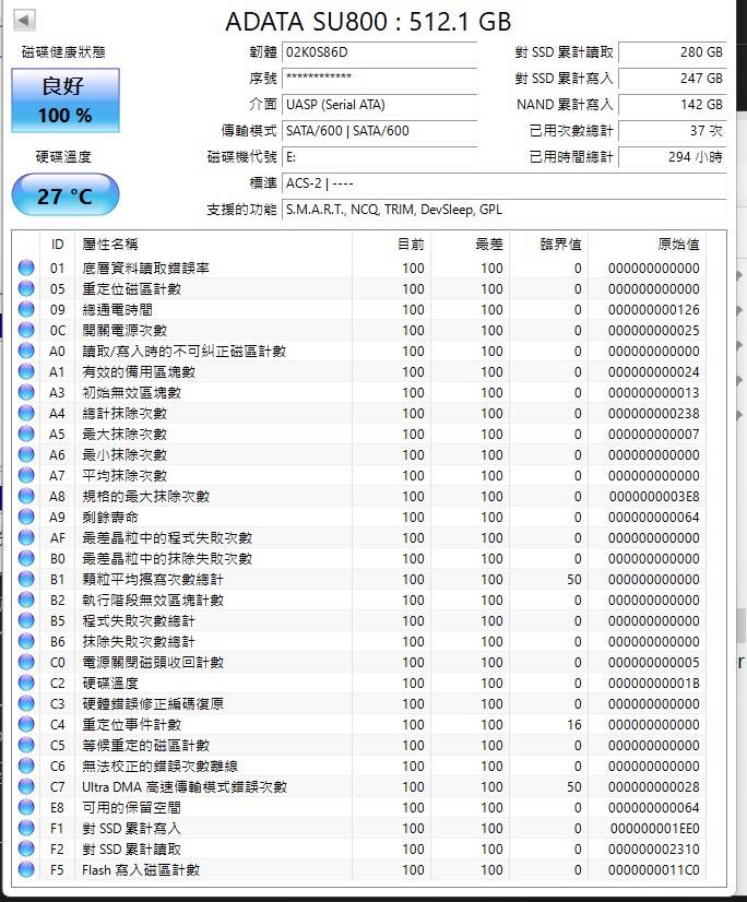 2. 威剛 su800 sata 512g * 1
