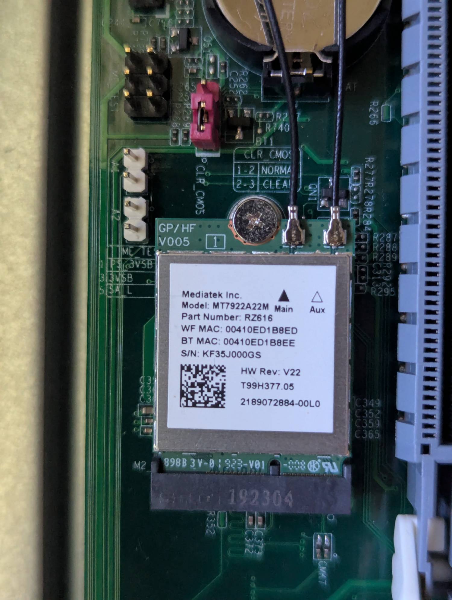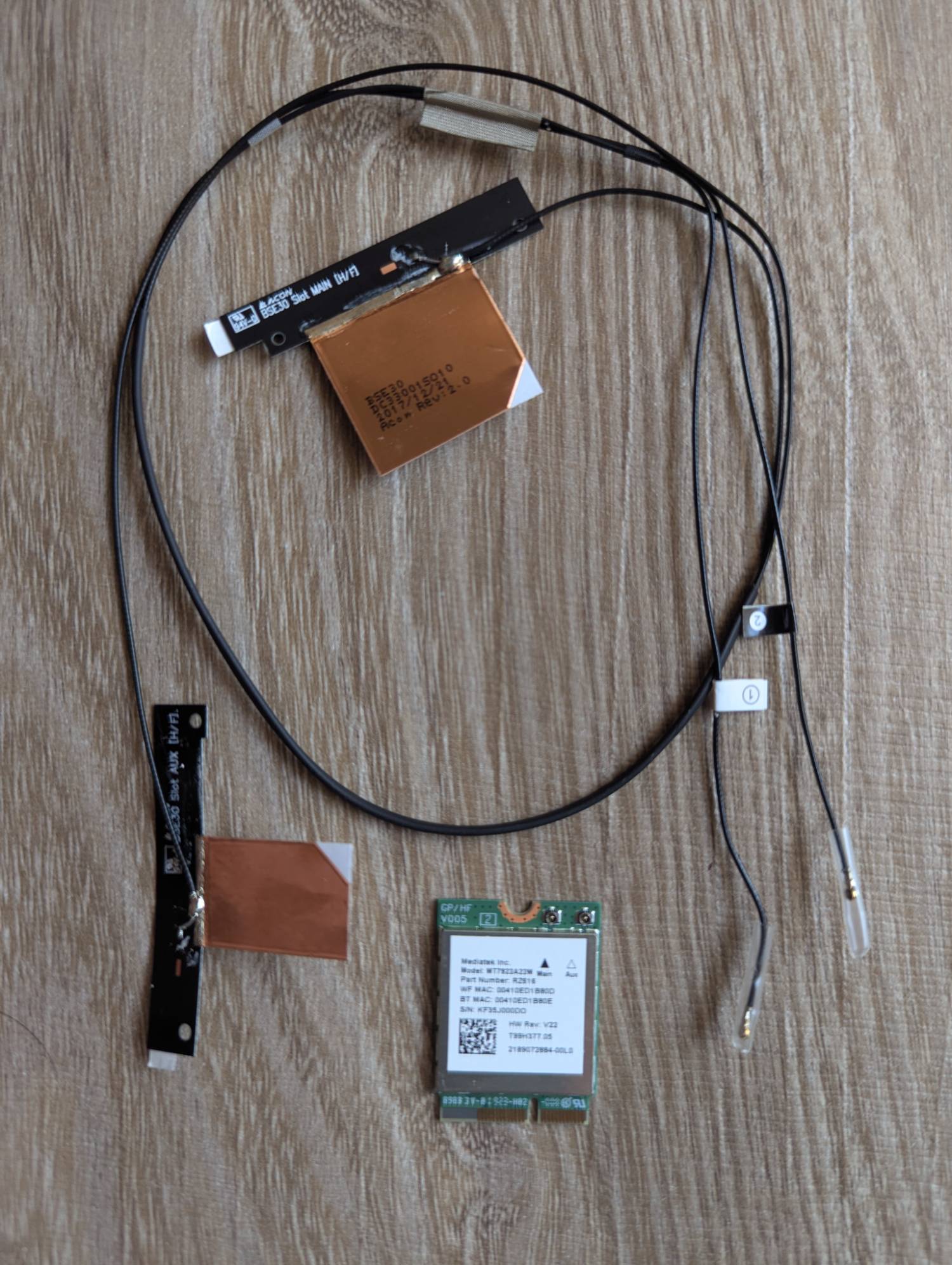 2. RZ616 WiFi 6E M.2 裸卡 (聯發科 MT7922A22m晶片) + 隱藏式天線x2