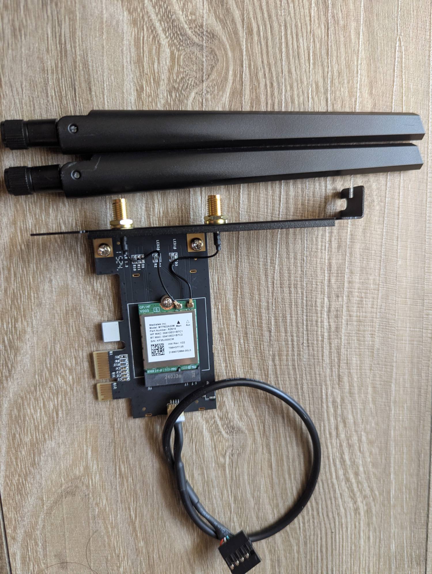 1. RZ616 WiFi 6E PCIE (聯發科 MT7922A22m晶片) 無線網路卡 + 8 Db天線x2