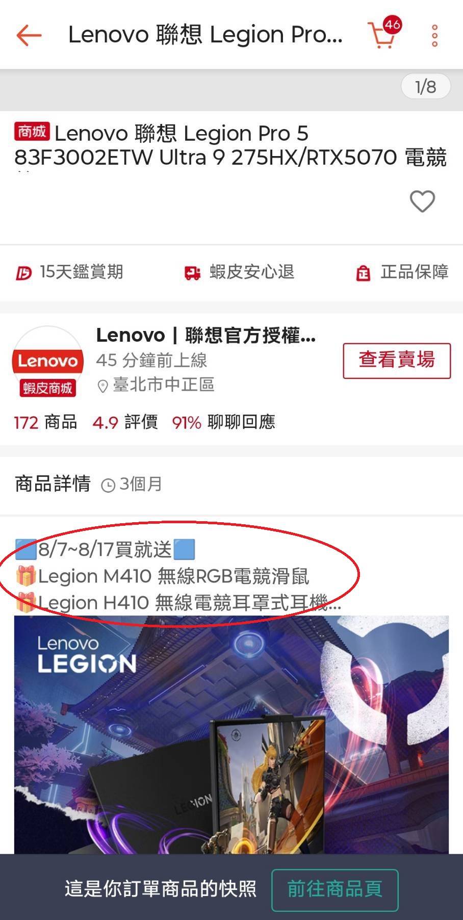 全新未拆公司貨,8月購入筆電之贈品