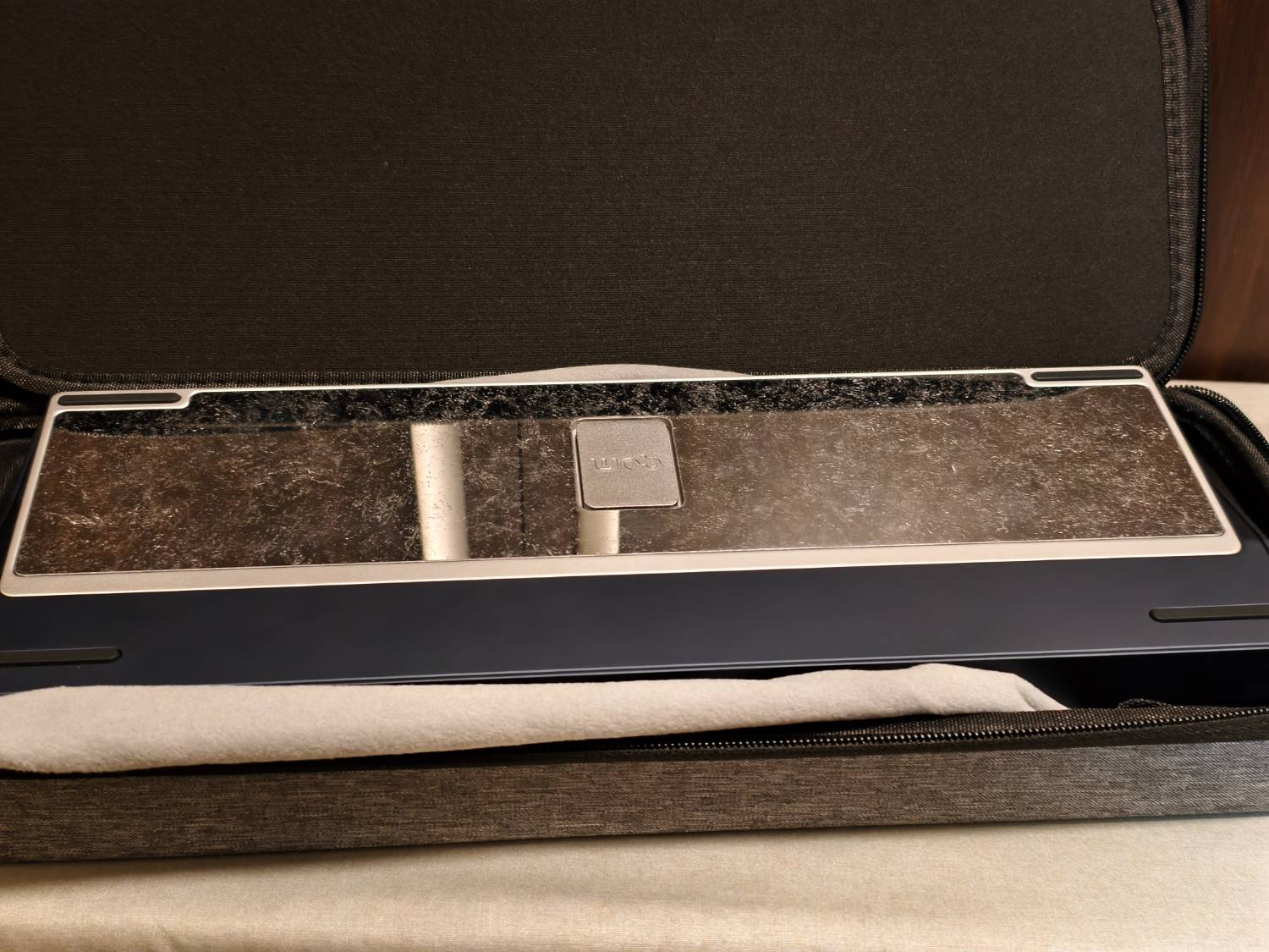 連接線上方金屬外殼有兩個劃痕,沒傷到底漆,要特別反光看才能看到