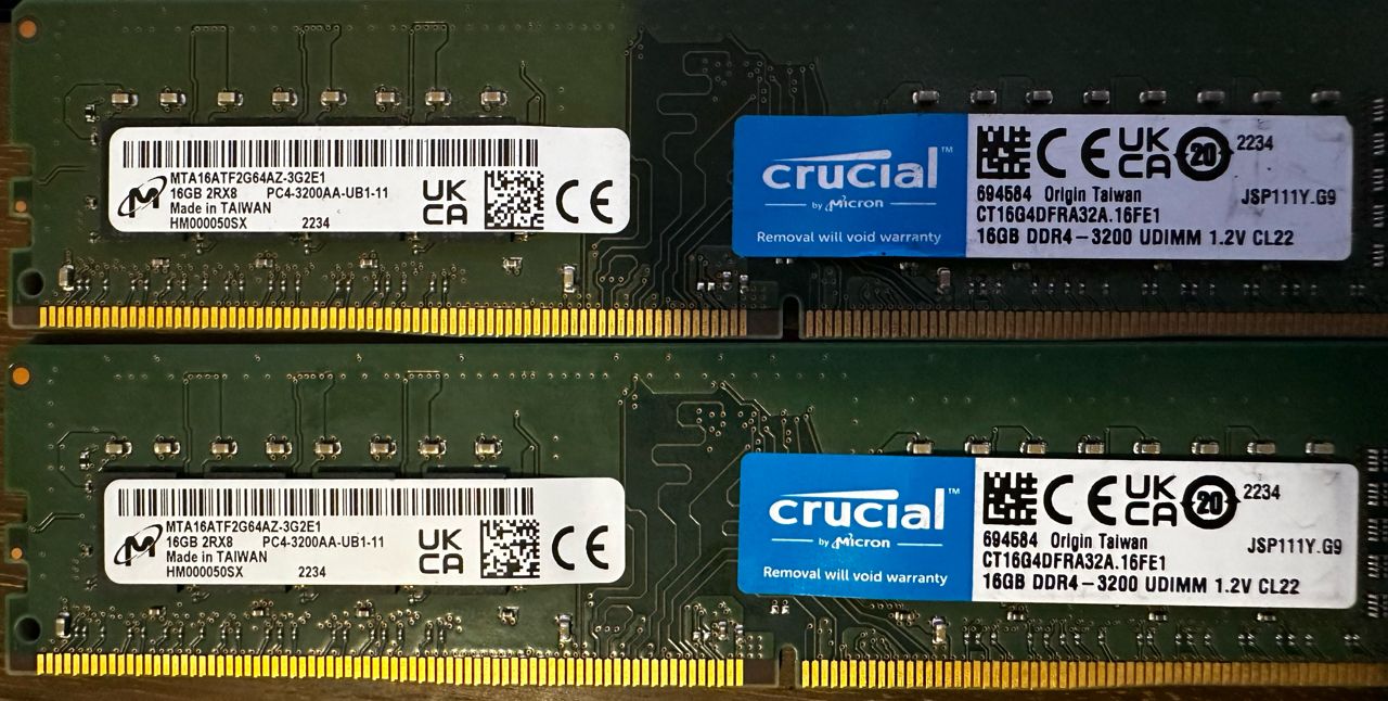 2.美光 DDR4-3200 16g*2 裸條 (無包裝)