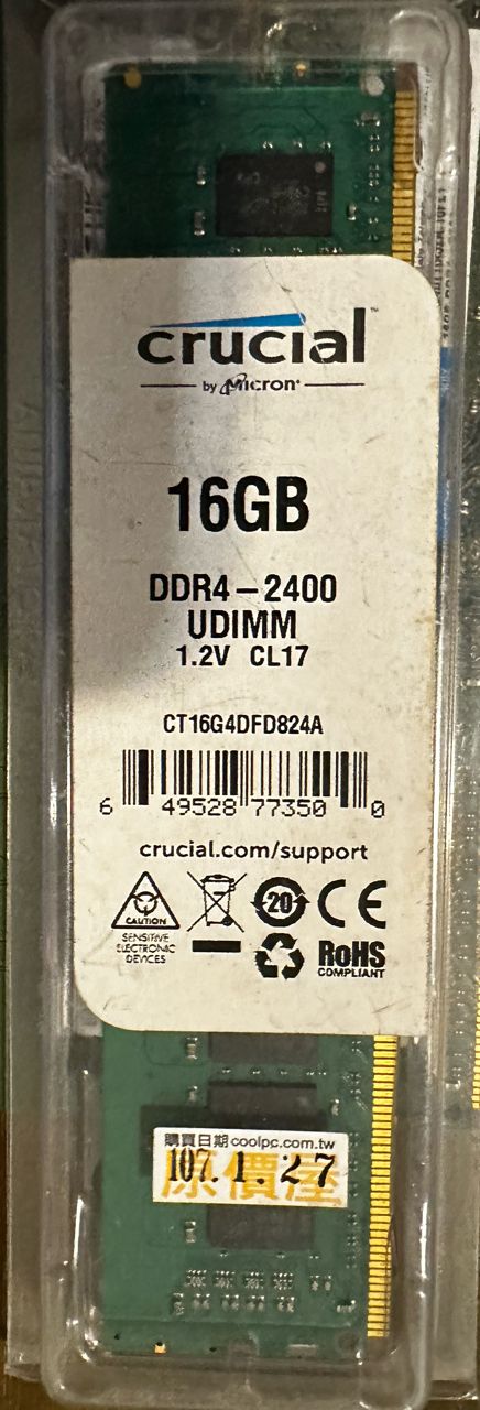 4.美光 DDR4-2400 16g*1 裸條(有包裝)