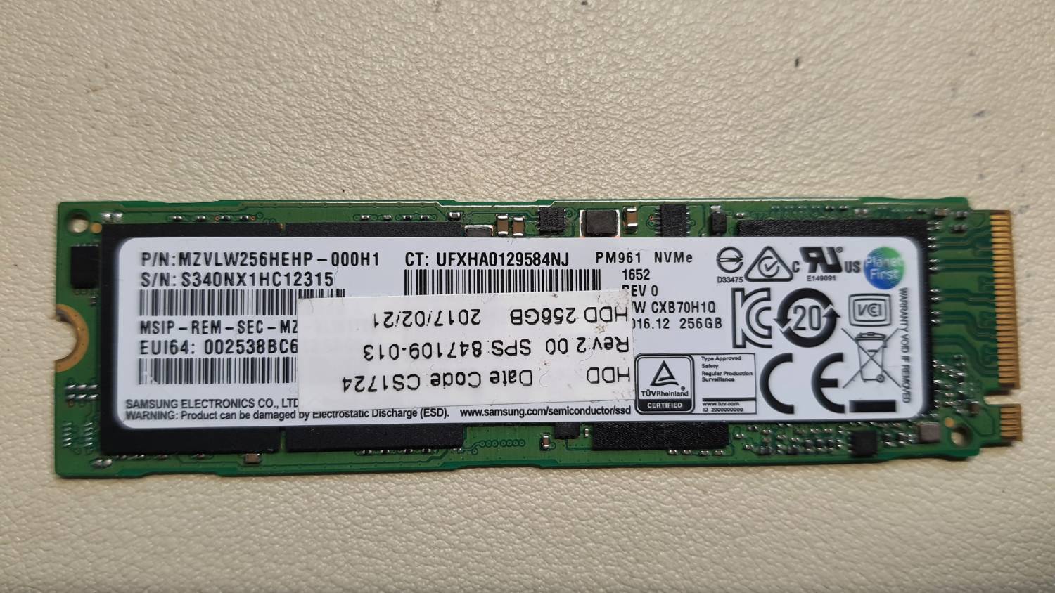 2.從筆電升級拆下的SSD 功能正常 看標籤應該是三星的OEM品