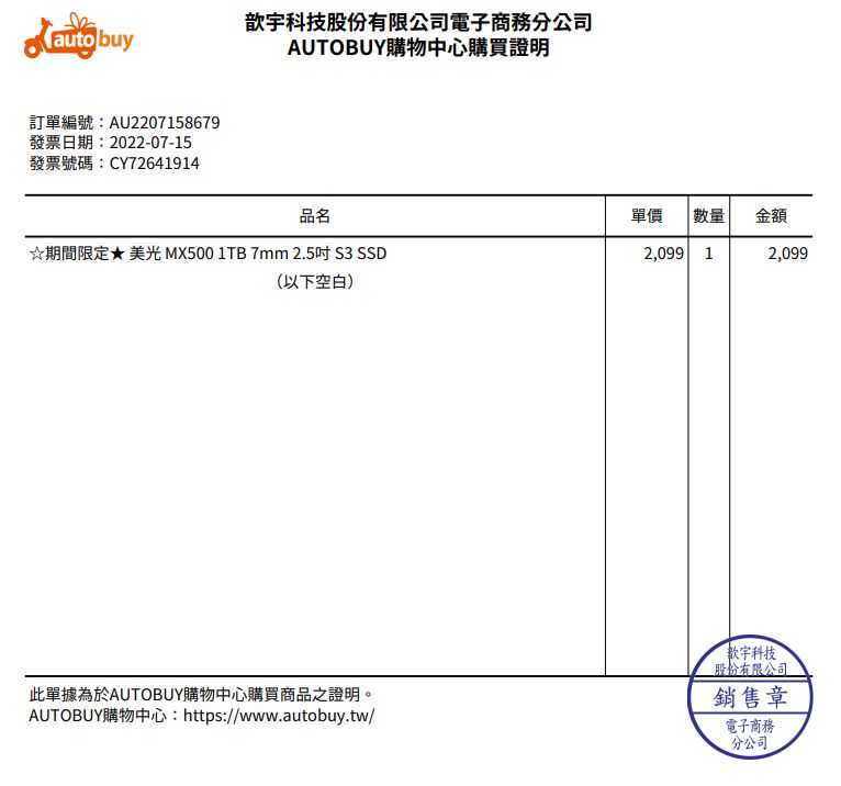 ◎硬體型號: 美光 MX500 1TB