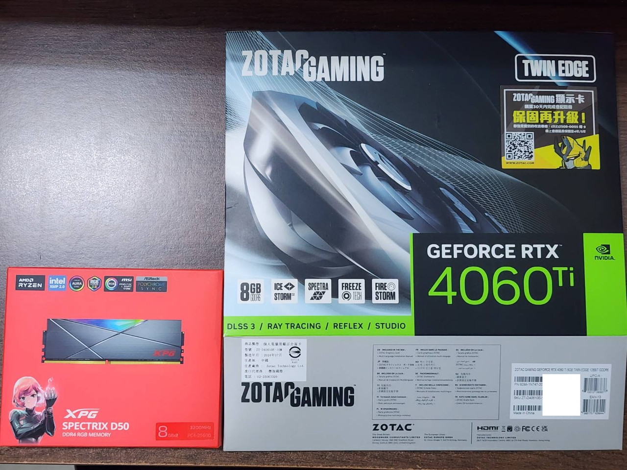 1. 顯示卡:ZOTAC GAMING GeForce RTX 4060 Ti 8GB Twin Edge 顯示卡