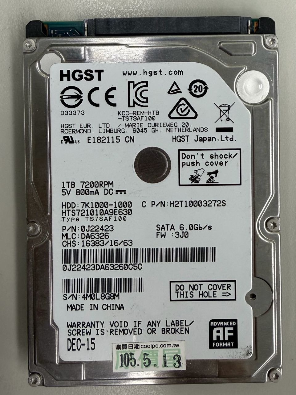 [賣/全國/寄送] HGST 2.5吋 1TB 7200rpm