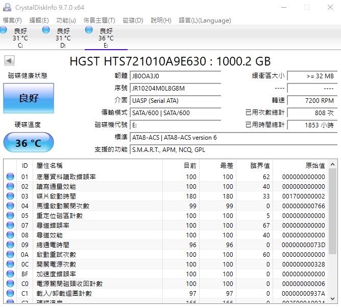 ◎硬體型號: HTS721010A9E630