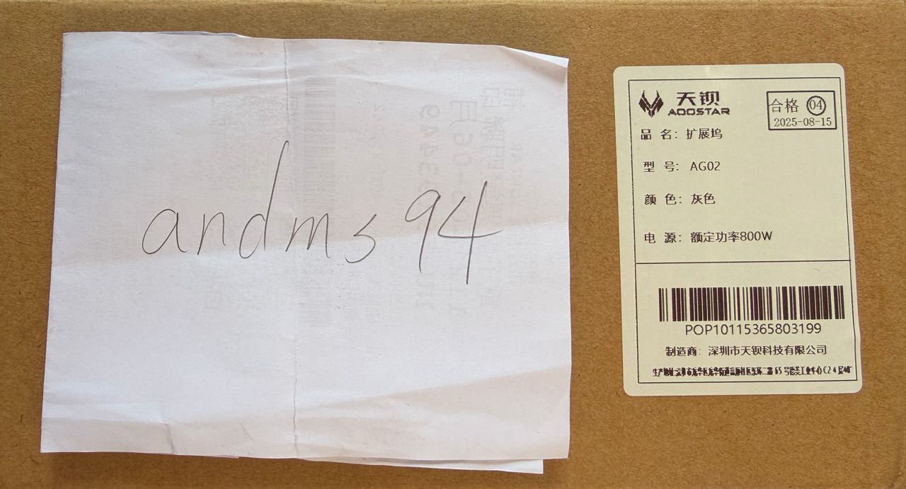 2. 天鋇AG02顯卡塢(Thunderbolt4+ Oculink+800W電源)