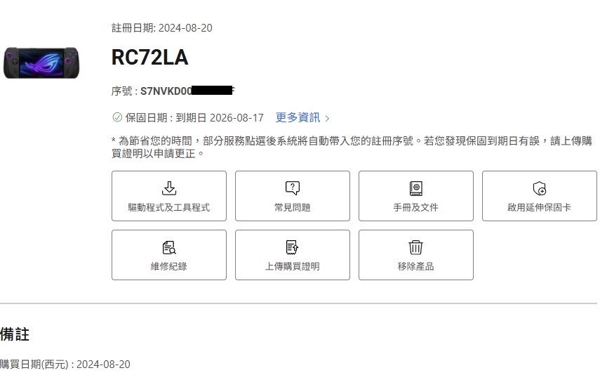 ◎硬體型號:ASUS ROG ALLY X保固內