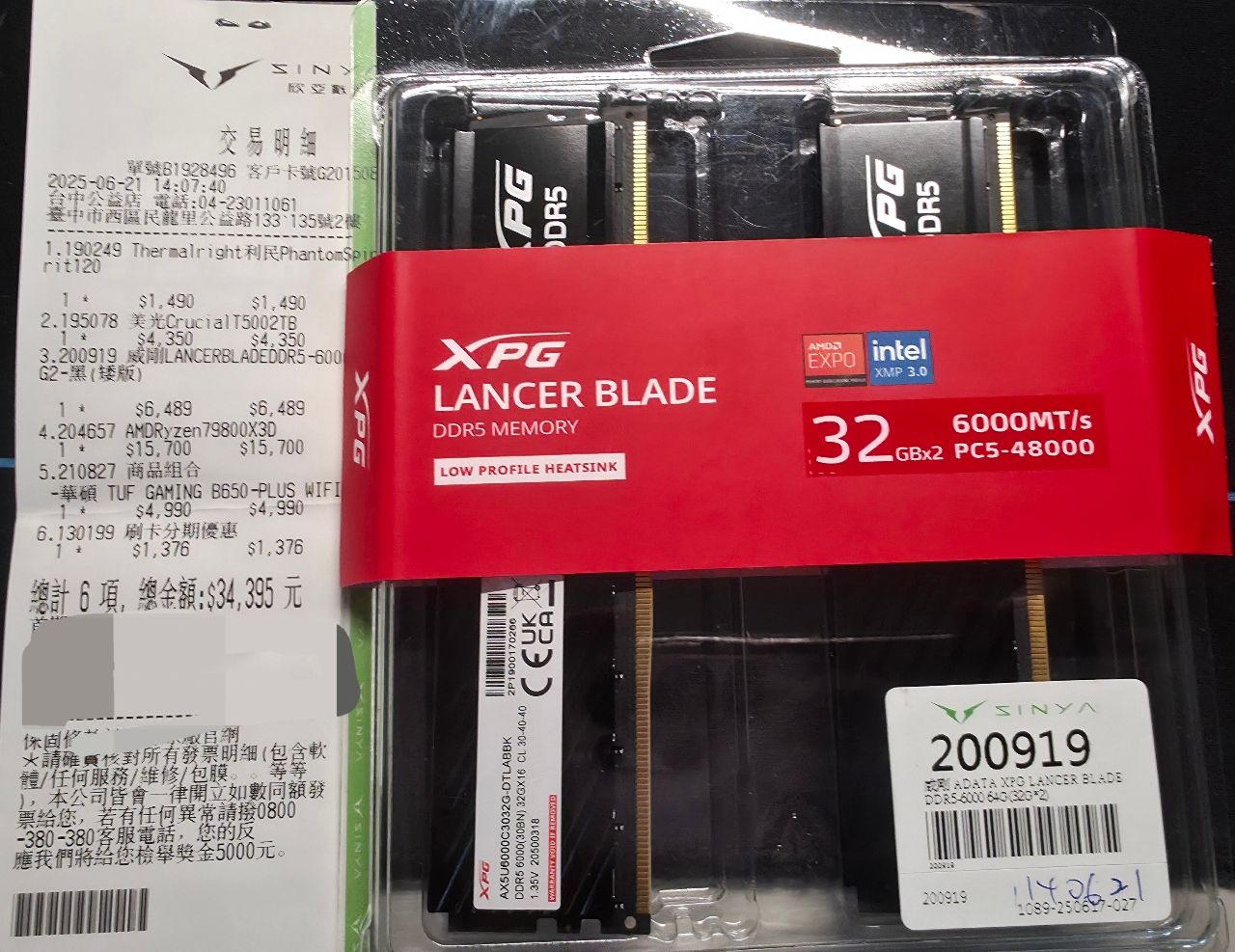 [賣/全國/皆可] [售出] DDR5 6000 CL30 32GB*2售