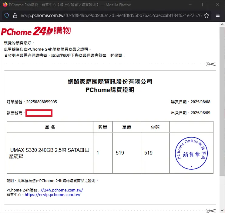 隨貨附上無打碼之購買證明影本