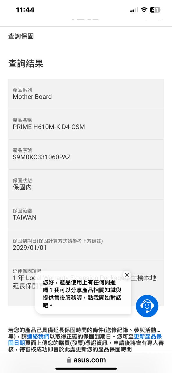 主板保固到2029/1/1