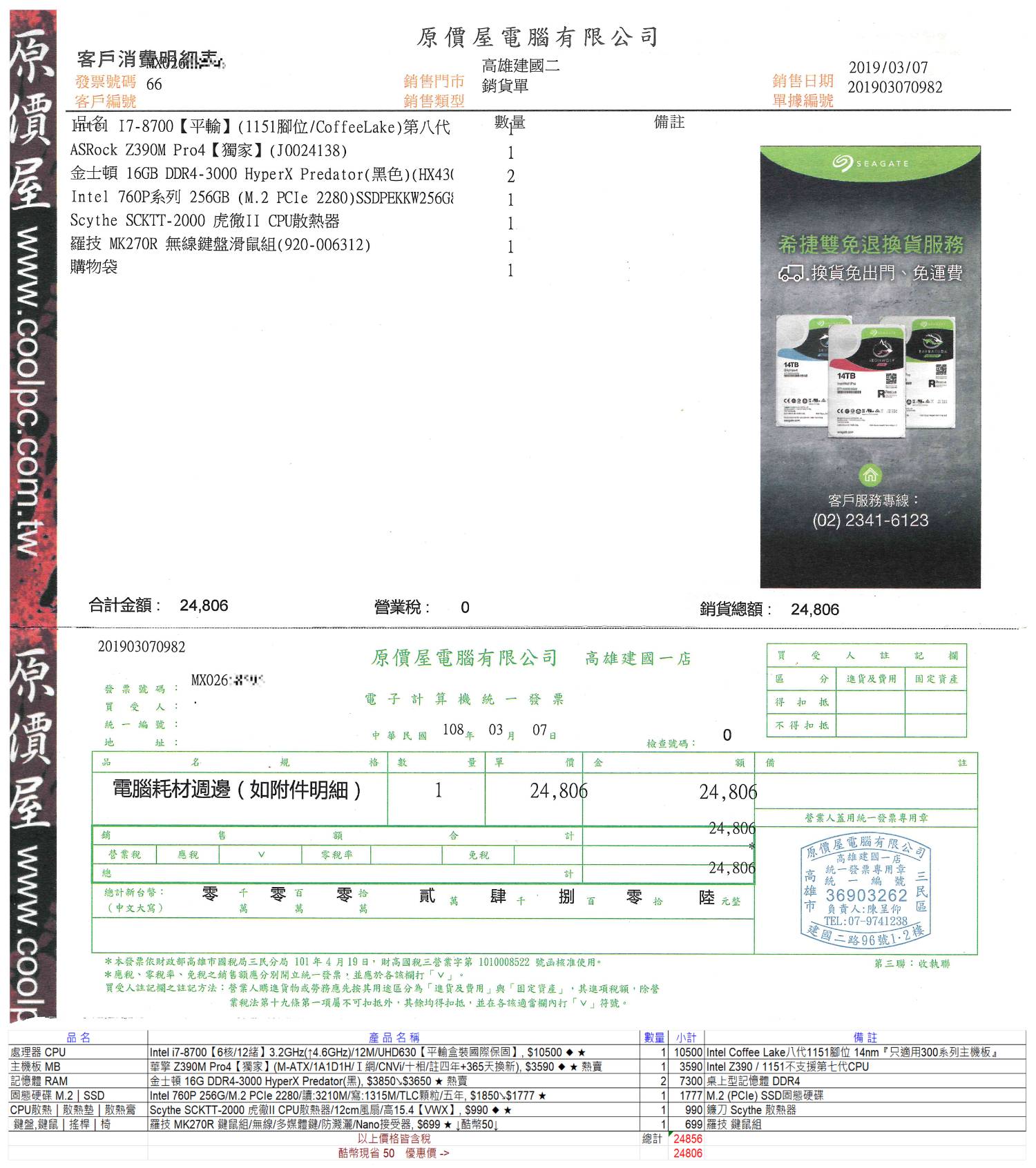 [賣/高雄/面交] i7-8700主機