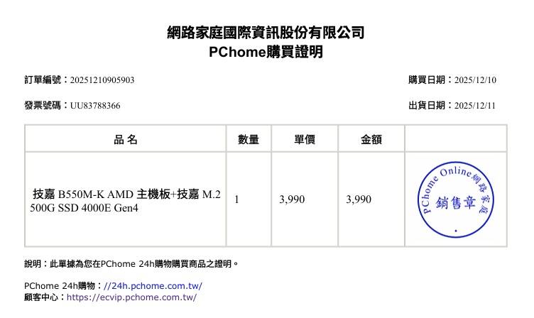 購買日期:2025/12/10於PCHOME購入