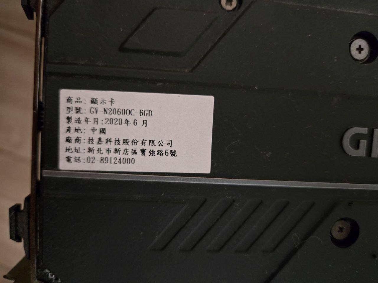 顯卡:技嘉 2060 6g
