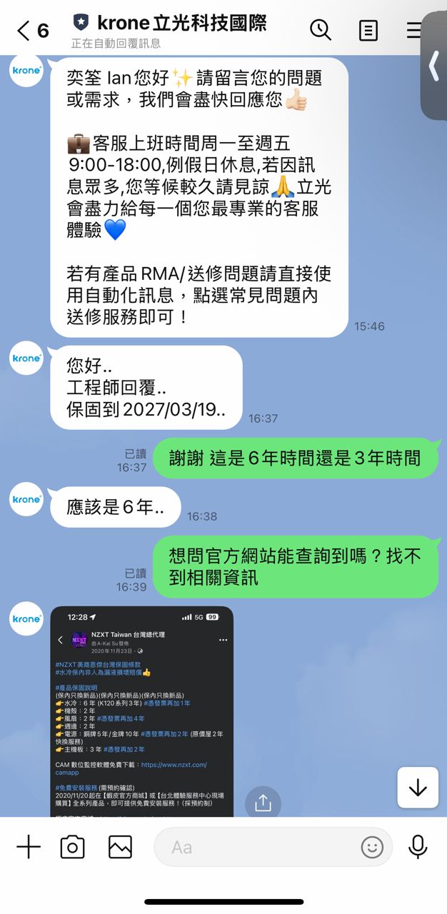 2.發票遺失,但中間有送修過,保固至2027/03/19