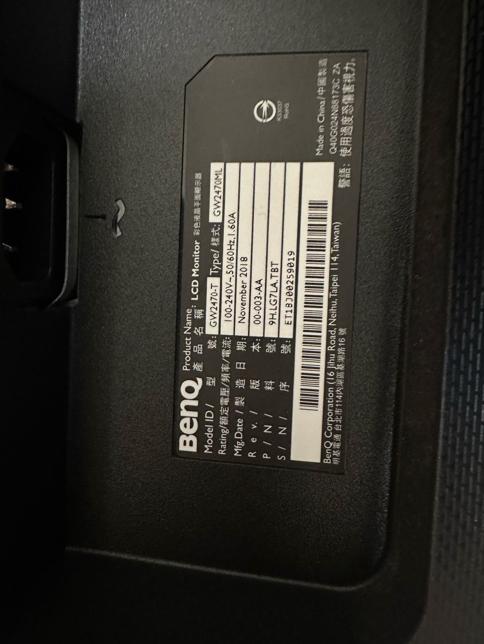 ◎硬體型號: GW2470-T 螢幕