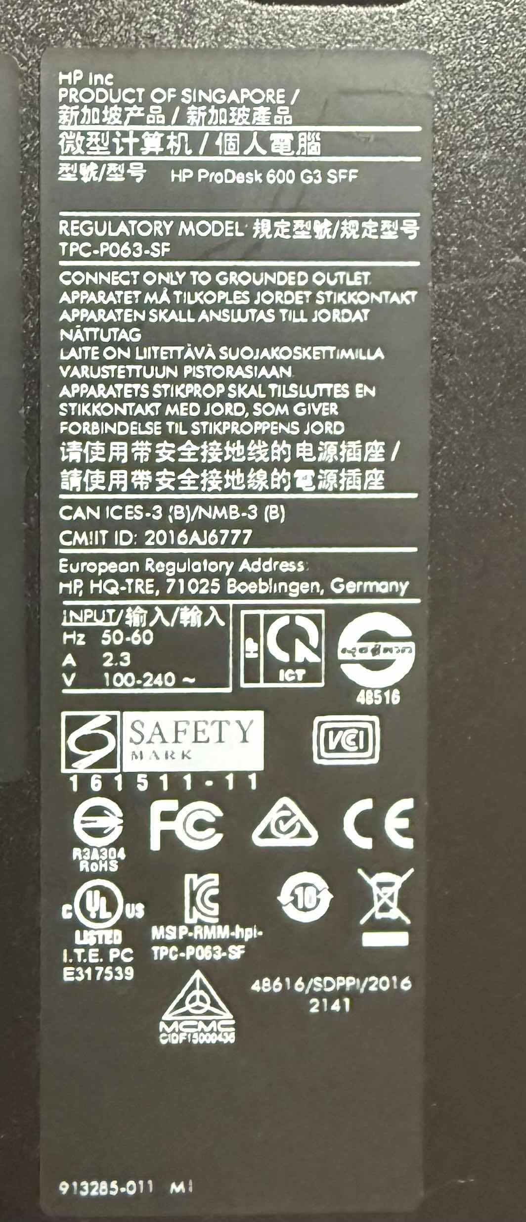 ◎硬體型號:HP ProDesk 600 G3 sff
