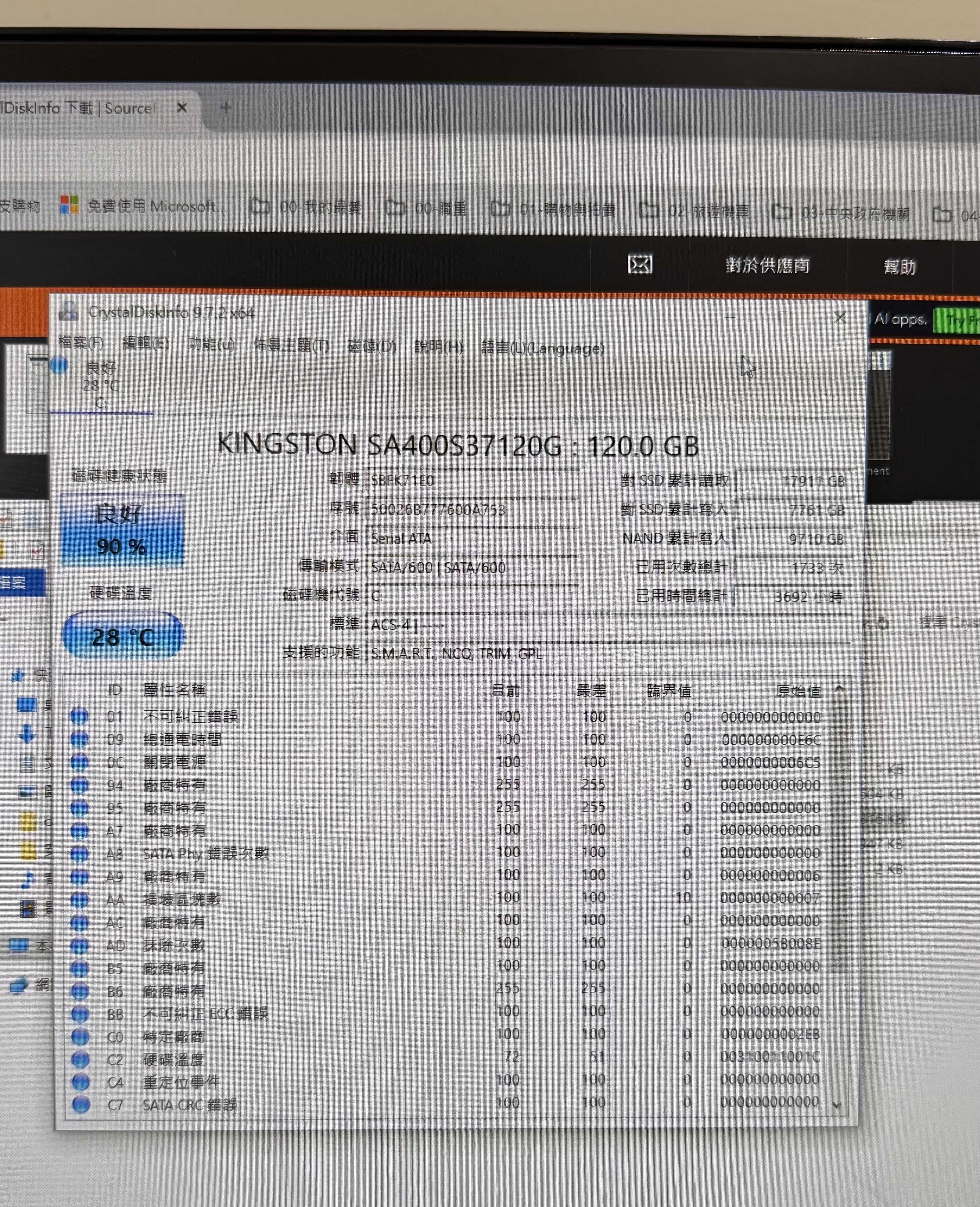 HDD: 金士頓2.5" 128G SSD 健康度90