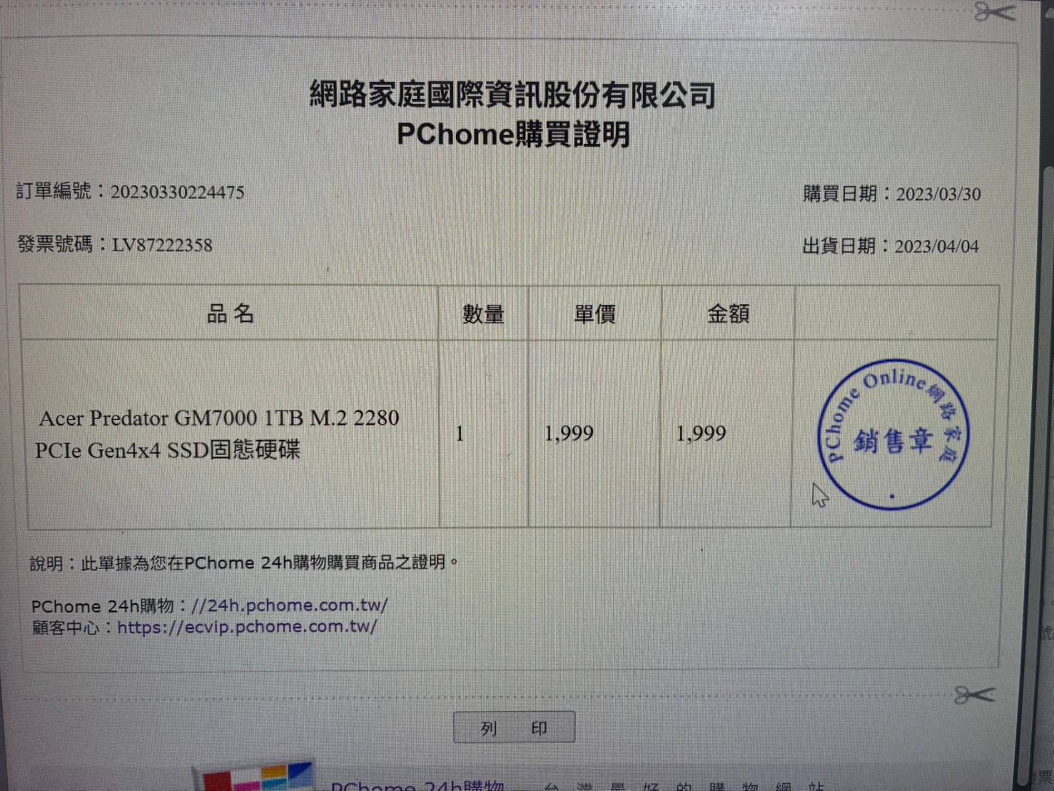 硬碟:Acer GM7000 1TB
