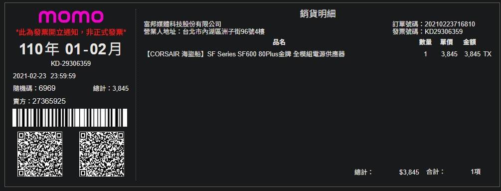 電源:保固七年至2028/02/23(購自板上)
