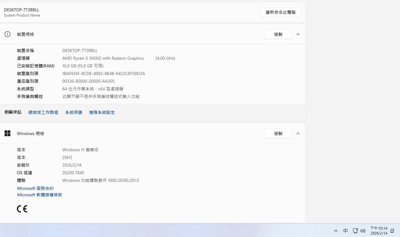 ◎硬體型號: 預定中 5600G全套主機一台