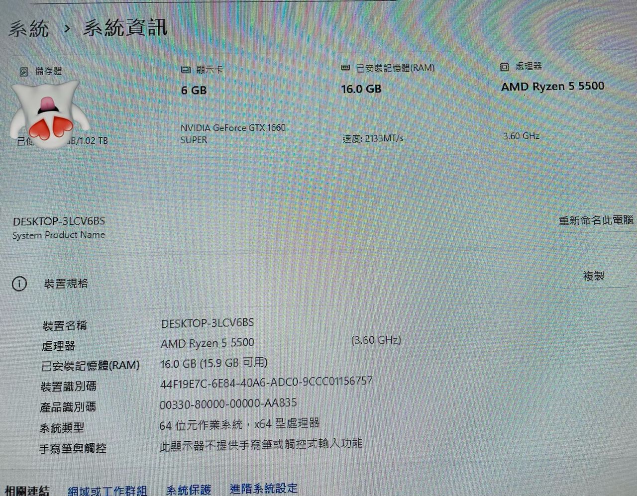 VGA: 技嘉 GTX 1660 super oc