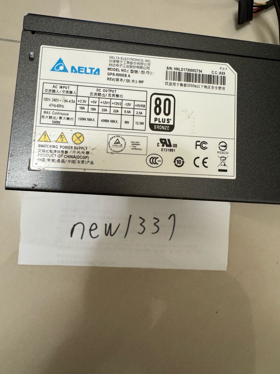 7.台達電 500W 銅牌電供 GPS-500EB A(售出)