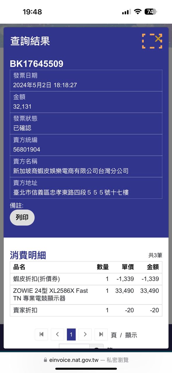 [賣/全國/黑貓] ZOWIE 2586x 540hx 螢幕