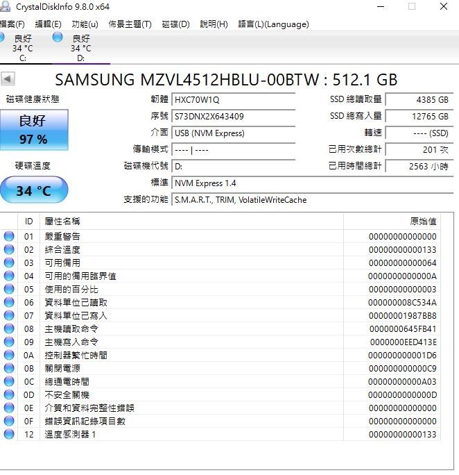 2.應該是過保,健康度良好如下圖.