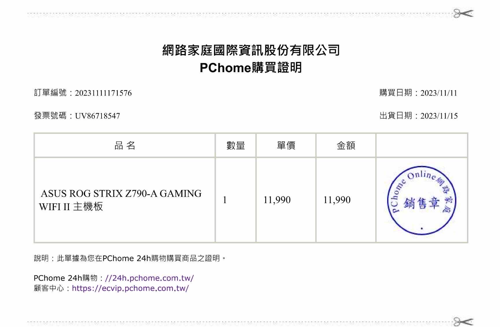 2.Z790-A - 2023/11/11 購入保內