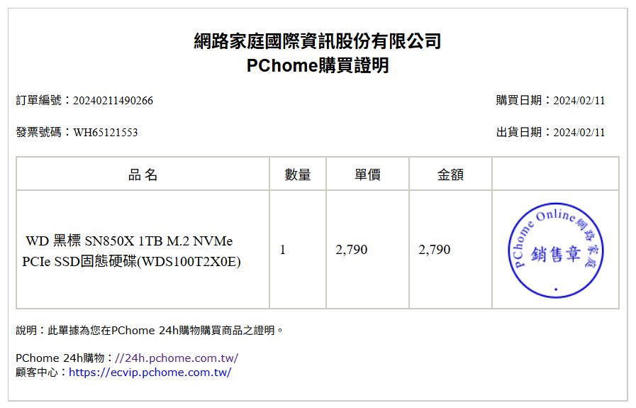 SSD:WD SN850X 1TB Gen4 SSD 2024/2/11PCHOME,保內2029/2/11。